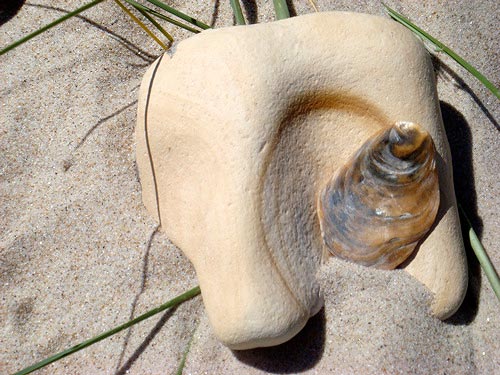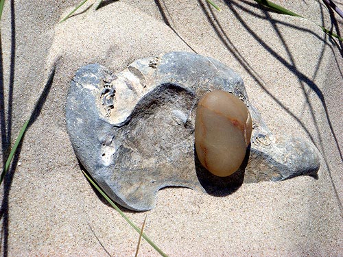 Diese hübsche kleine Kollektion von Strandsteinen haben Arnama Barzuleva und Mike Sandbothe am 4. Juni 2008 am Strand von Svinkløv entdeckt; und zwar ganz in der Nähe des traumhaft schönen "Svinkløv Badehotel", hoch oben an der Westküste von Nordjütland in Dänemark. Es war ein genußvoller, sehr spezieller, besonders strandiger Tag!